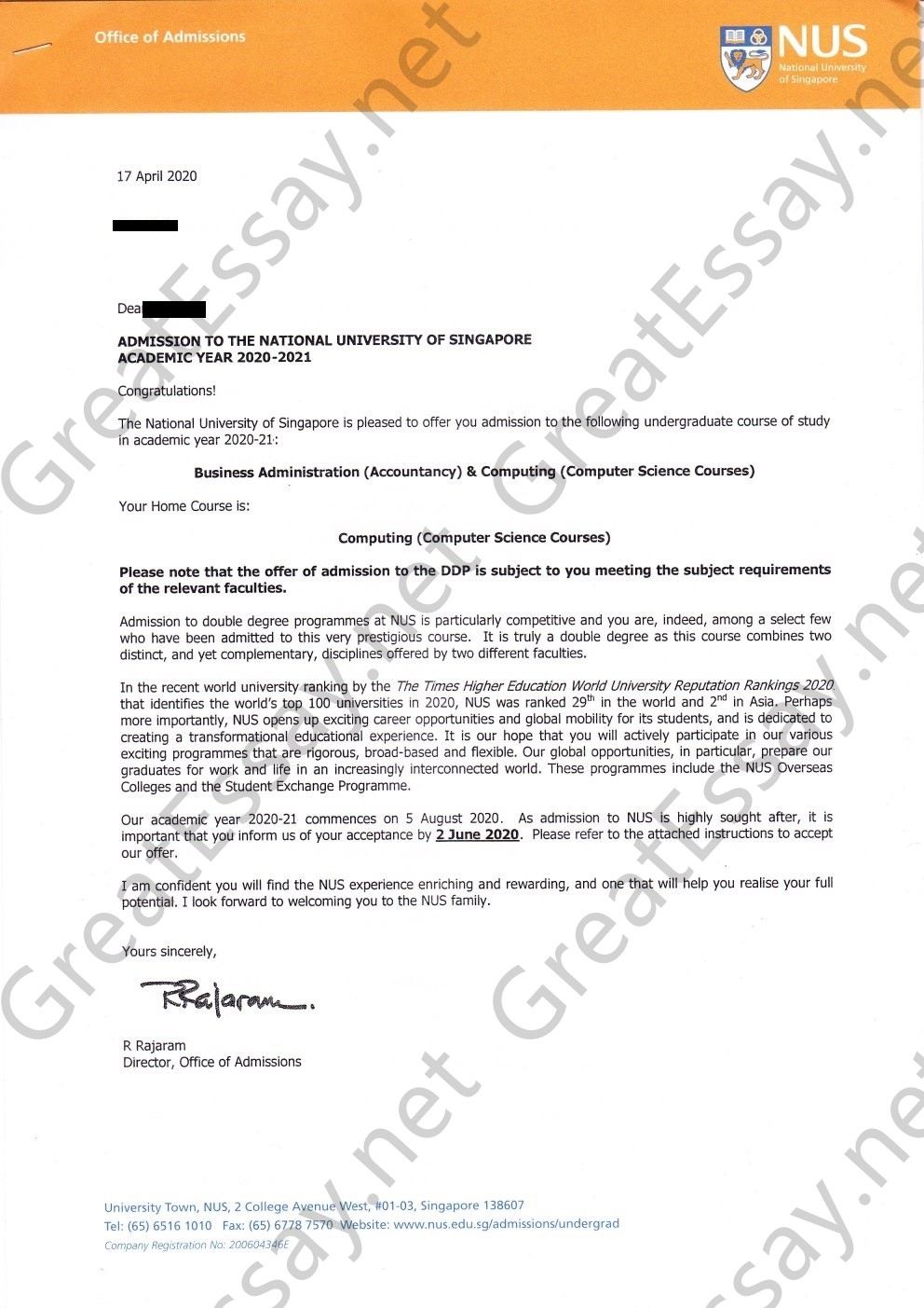 成功案例 Offer-新加坡-本科-会计计算机-新加坡国立